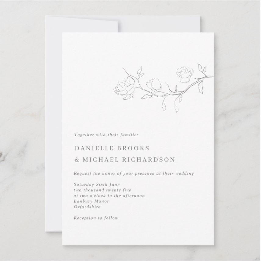 Elegant Jasmine is a minimalist and timeless wedding stationery suite featuring line drawings of Jasmine.